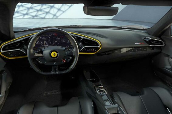 U kabini minimalizam i digitalizacija. Sve u skladu sa aktuelnim trendovima u automobilskoj industriji. Ferrari se lišio brojnih prekidača i tastera na centralnoj konzoli, ali ih zato na upravljaču ima u popriličnom broju.