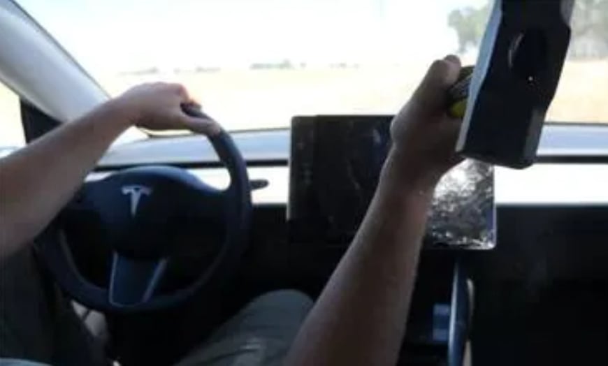 Neposredno nakon što je čovek napustio izložbeno-prodajni salon, seo je za volan Teslinog Modela 3 i lagano je krenuo s doziranim udarcima teškog čekića po ekranu. Kako se intenzitet zamaha pojačavo, tako je staklo displeja počelo da popušta. Iskustvo nalik onom u kultnom filmu Odiseja 2001. je direktno prenošeno preko YouTube kanala, dok je program nazvan „Šta se dešava kada tokom vožnje razbijete ekran na vozilu s oznakom Tesla Model 3?“.