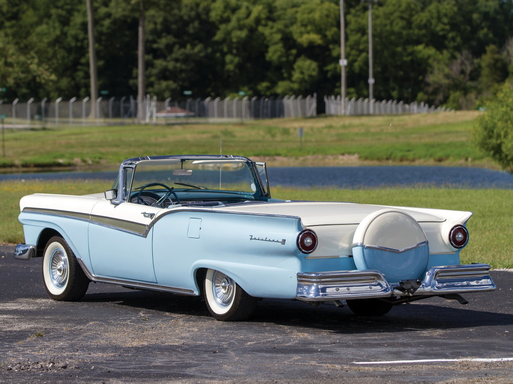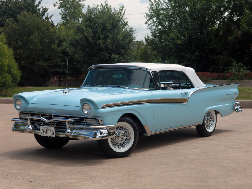 Ford je pružao gotovo identičnu ponudu kao Chevrolet sa verzijama Custom, Custom 300, Fairlane i Fairlane 500, kao i sportski Thunderbird, ali još dva specijalna primerka radi imidža. Jedan od njih je bio mali pikap na šasiji automobila nazvan Ranchero dok je prelepi Skyliner pružao metalni krov koji bi se pritiskom na dugme spuštao u prtljažnik. Ranchero i Skyliner nisu privlačili mnogo kupaca, ali svakako jesu naterali narod da ih vidi u izložbeno-prodajnim salonima. Ford je nadmašio Chevrolet i po pitanju snage, a ona se kratala od 144 do 300 „konja“.
