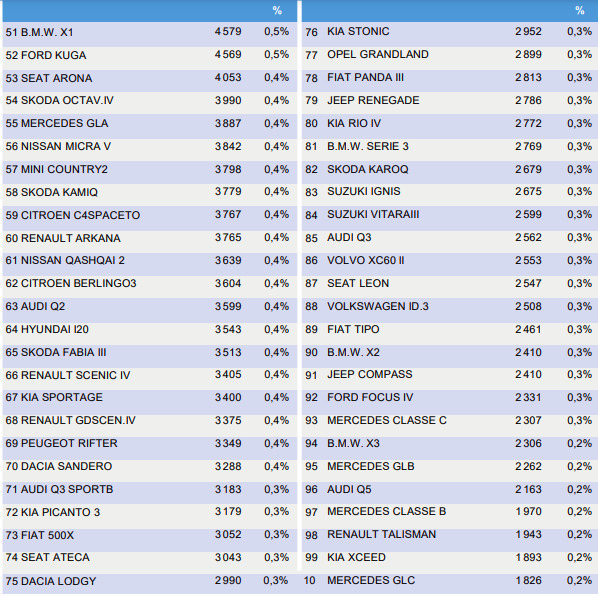 Ovo je 100 najprodavanijih vozila u Francuskoj tokom prvog polugodišta tekuće godine: