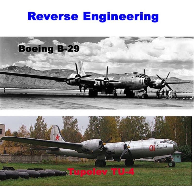 Možda najefektnijii primer navedene rečenice je bio Boeing B-29 Superfortress, američki teški bombarder koji se smatrao tehnološkim čudom i bez konkurencije. Kada su Jenkiji odbili da podele ovu ideju sa drugim saveznicima, Sovjeti su odlučili da bukvalno prekopiraju svaki detalj, a kao rezultat je nastao Tupolev Tu-4.
