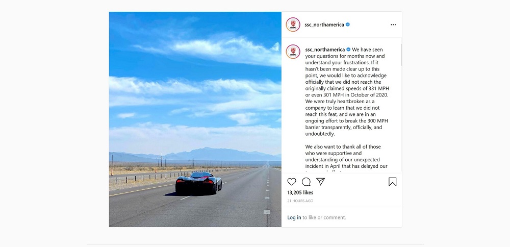 Iz SSC-a kažu da im je „srce slomljeno“, ali da se neće zadovoljiti postignutim i da je cilj da njihov atraktivni četvorotočkaš bude prvi koji će imati prosečnu cifru od 300 mph (480 km/h).