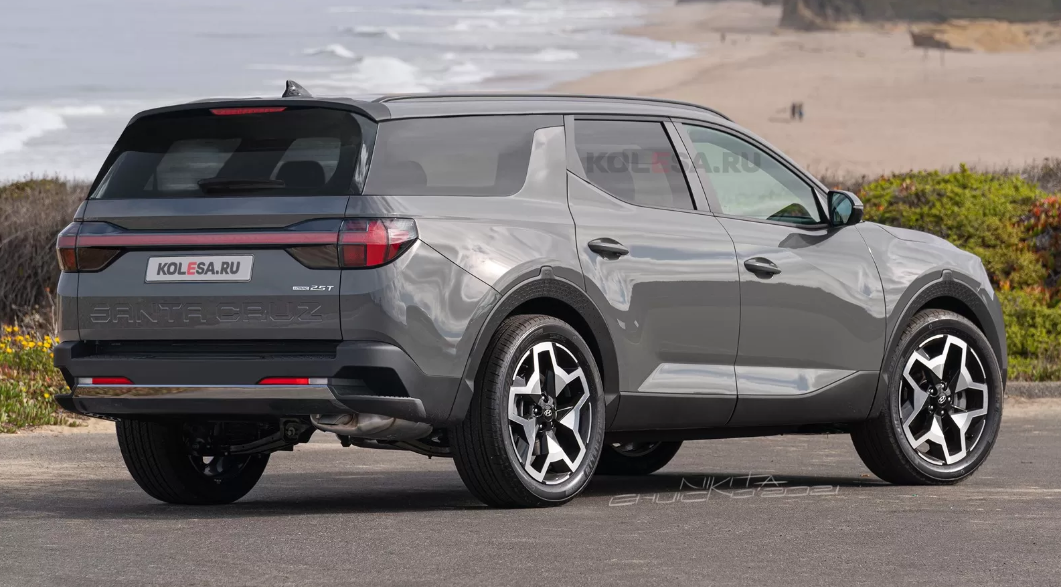 Da podsetimo da dužina novog azijskog pikapa iznosi povelikih 4.971 milimetara dok je širina na koti od 1.905 mm. Kamionet je visok 1.694 mm, dok je između osovina površina od 3.005 mm. Na primer, pandan indikatori kod modela Tucson, koji je inače poslužio kao osnova pri projektovanju Santa Cruza, bi bili sledeći (dužina, širina i visina): 4.630; 1.865; 1.665 mm, dok je međuosovinski razmak 2.755 milimetara. Tako bi krosover sa slika koje smo preneli s Kolesa mogao biti baš Tucson s tri reda sedenja i produženim međuosovinskim rastojanjem.