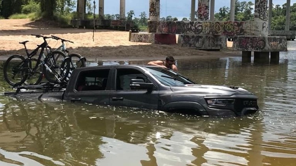 One su se pojavile na Fejsbuk stranici nazvanoj „Extreme Off-Road Park“ i pokazuju vlasnika kako pokušava da izađe iz TRX-a dok kamionet ostaje u vodi. Potrebno je spomenuti da se u prikolici nalaze i nekoliko bicikla i verovatno još neka oprema, pa možemo pretpostaviti da je dodatna masa igrala ulogu u ovom neplanskom slučaju, pošto voda nije ni blizu haube.