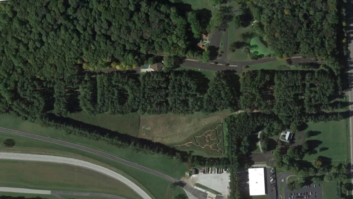 Sam centar se nije izmenio u velikoj meri, ali kao što možete da vidite na priloženim fotografijama, drveće je donekle zanemareno i znak više nije jednostavan za čitanje iz vazduha kao što je to nekada bio.