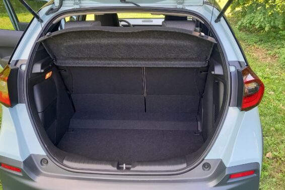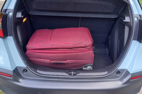Kao manu Jazz-a, neki vide i veličinu prtljažnika (deklarisano sa 304 litra u prva tri paketa opreme, a sa 298 kod Crosstar-a ), to možda jeste za diskusiju, uz napomenu da (prema podacima koje sam pronašao) Clio hibrid ima 254 litra, a Yaris 286 litara. Prosto, baterije za hibrid se negde moraju smestiti, obično u pod gepeka (pa zato nehibridni Clio ima zapreminu gepeka od čak 391 litar) ili ispod zadnjih sedišta, kao kod Yarisa, ali tada cenu takvog tehničkog rešenja skupo plaća komfor zadnje klupe, jer se smanjuje korisna visina za smeštaj trupa i glava putnika. Iz znatiželje sam u gepek stavio kofere koje i inače porodično koristimo (priložene su fotografije ).