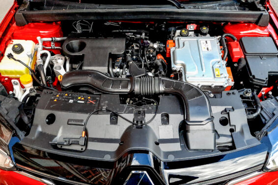 Kao i Captur E-Tech i Megane E-Tech prepun je novih rešenja, jedan od kurioziteta je odsustvo klasičnog kvačila, čime se između ostalog dobilo na prostoru, kako bi se ispod haube smestila dva električna motora. Glavni razvija 66 ks, dok je slabiji od 34 ks uglavnom u funkciji starter-generatora, sve dok se ne izabere program Sport, kada i on daje svoj doprinos. Nisu upareni s nekim savremenim kućnim agregatom kao što se to moglo očekivati (mislim na 1.0 TCe ili 1.3 TCe), već s atmosferskim četvorocilindarskim 1.6, poreklom iz Nissana.