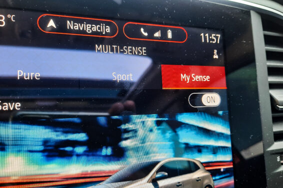 Inače ovaj Megane odlično mi „leži“ u rukama, nalazim da je pozicija za upravljačem veoma dobra. Posebno kada su sedišta kao u voženom primerku, dakle s integrisanim naslonom za glavu i presvučena Alkantarom. Iako poseduju snačne bočne oslonce, udobna su i dovoljno široka, čak i za veoma korpulentne osobe. Voženi primerak opremljen je i najsavremenijim sistemima asistencije, uključujući „Highway & Traffic Jam Companion“ s tehnologijom poluautonomne vožnje „nivoa 2“, koja se može koristiti pri brzinama od 0-160 km/h.