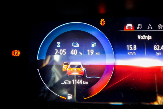 U 100% električnom modu potrošnja se kreće između 14 i 22 kWh, pre nego li su baterije ispustile dušu putni računar pokazao je prosek od 18,5 kWh. Nakon toga sledi kačenje na punjač, čija maksimalna snaga punjenja iznosi skromnih 3,6 kW. Na klasičnoj kućnoj utičnici treba nekih 5h da bi se ponovo napunile, odnosno uz snažniji punjač do 3h. Ništa znači od punjenja „na brzaka“ na nekom od javnih „superpunjača“, snage i do 100 kW. Uostalom ne vidim ni razloga, osim što punjenje izađe znatno skuplje nego li kod kuće, tu je dobri stari benzinac da se nastavi dalje…