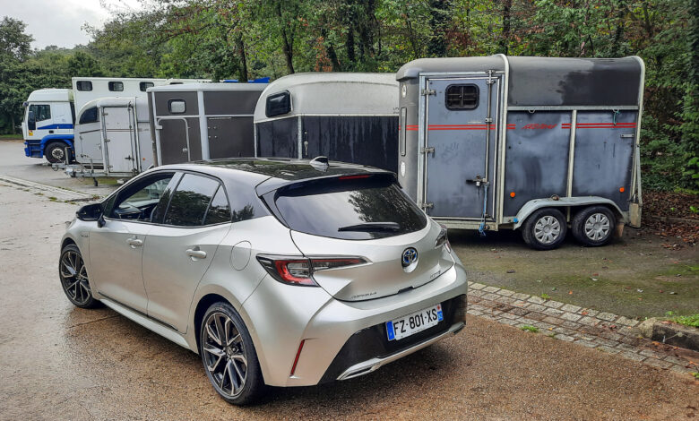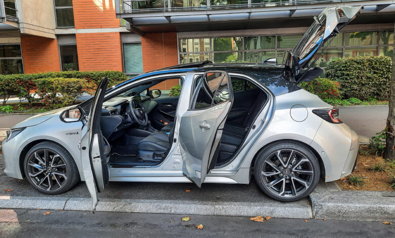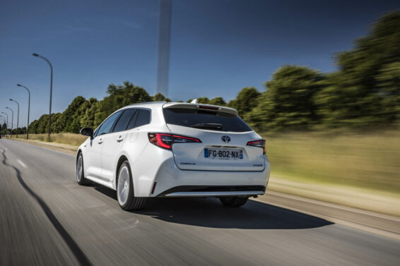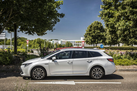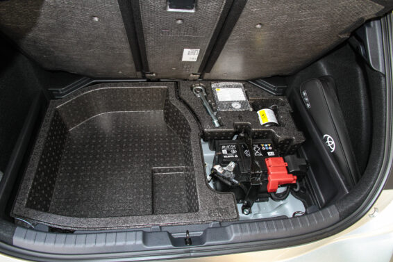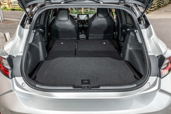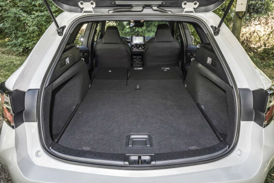 Prtljažnik je zato plići, u njegovom dnu je kompresor s priborom za opravku guma i standardna baterija od 12V, koja nije mogla stati u motorni prostor, gde su dvolitarski benzinski blok i električni motor. Srećom po Corollu te je istovremeno ponuđena i karavan izvedba Touring Sports, s međuosovinskim rastojanjem produženim za 6 cm (2,7 m), te je i prostor za putnike pozadi znatno superiorniji. Duža za 28 cm (4,65 m) ima i sasvim solidan prtljažnik od 580 l, koji se obaranjem zadnje klupe poveća na nekih 1.600 l.