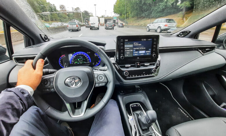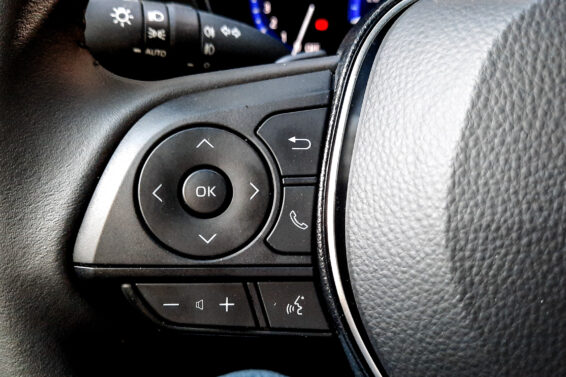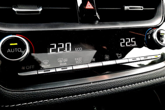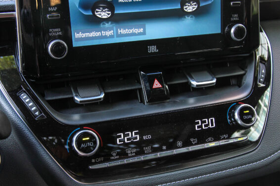 Nenaviknut vozač, kao što je to bila moja malekost, u početku je pomalo izgubljen, ne zna šta će pre da gleda!? No, nakon malo adaptiranja uvideh da je sve na svom mestu, šta više da ništa ne nedostaje. Predviđen je čak i obrtomer s leve strane, i to „po starinski“, s kazaljkom! Malo više su iskomplikovali stvar s satelitskom navigacijom, bogami sam se namučio „k’o siroče“ da ukucam željenu adresu, tj. da je promenim u vožnji. Koliko sam razumeo odmah po pojavljivanju Corolla nije imala aplikacije Android Auto i Apple CarPlay, no od prošle godine su u serijskoj opremi. Iako su sitne i nepregledne komande za klima uređaj su srećom izdvojene, nemaju nikave veze s centralnim ekranom.