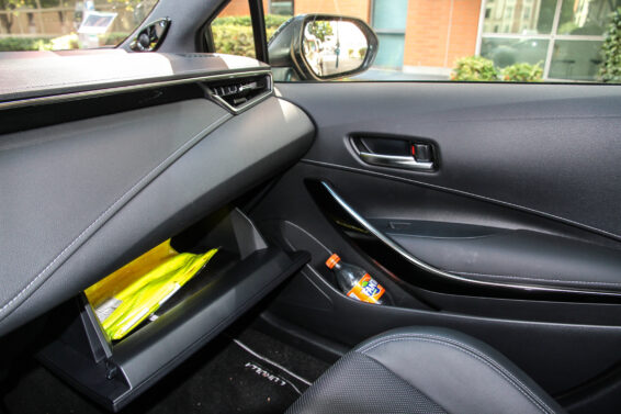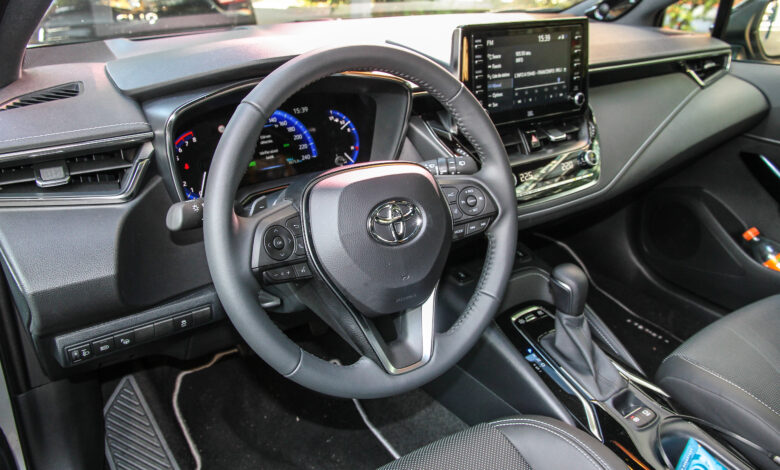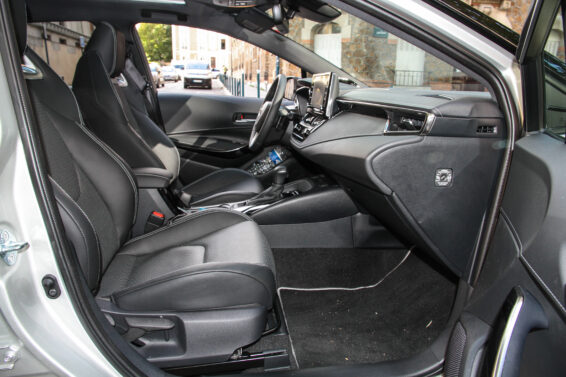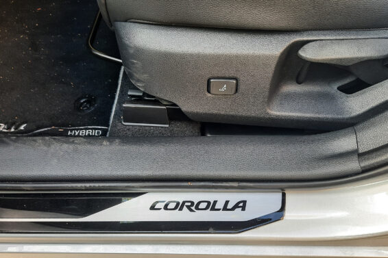 Iako nije otišla u krajnost Toyota je podarila Corolli izvesnu originalnost, rekao bih da je enterijer umereno sofisticiran. Lepo deluje plavo osvetljenje, dok su upotrebljeni materijali kvalitetni. Čitava centralna konzola je tapacirana, tj. presvučena nekakvim mekanim sintetičkim materijalom, prijatnim na oko i dodir. Bez ekrana se više ne može, pored velikog centralnog od 8 inča i instrument tabla je numerička (TFT ekran od 17,8 cm).