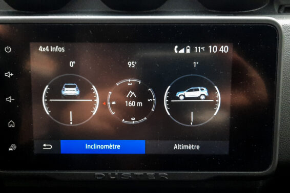 Sa selektorom u modu Auto, ukoliko prednji točkovi proklize i do 50% obrtnog momenta prelazi na zadnje točkove. Stavljanjem selektora u poziciju 4WD Lock naš Duster postaje pravi terenac, uzdignut od tla na 214 mm, ima napadni ugao od 30°, i izlazni od dobrih 33°. Snaga se ravnopravno rasporedi na sva četiri točka, sve do brzine od 60 km/h, pod uslovom da se vozi najmanje jedan minut. Potom, blokada se automatski isključi, kao i u slučaju kada se dostigne 80 km/h.