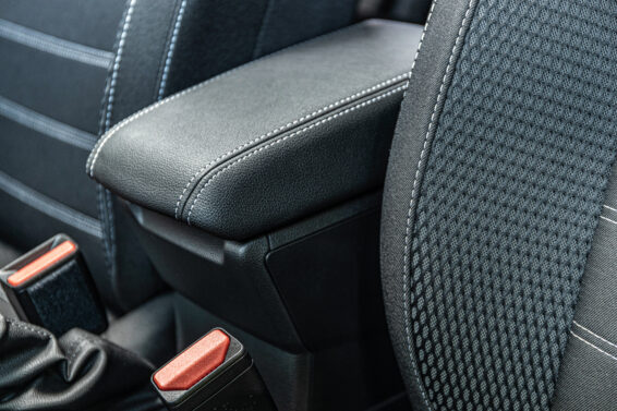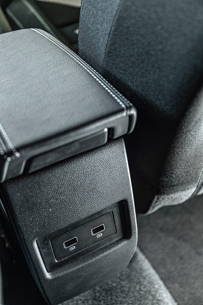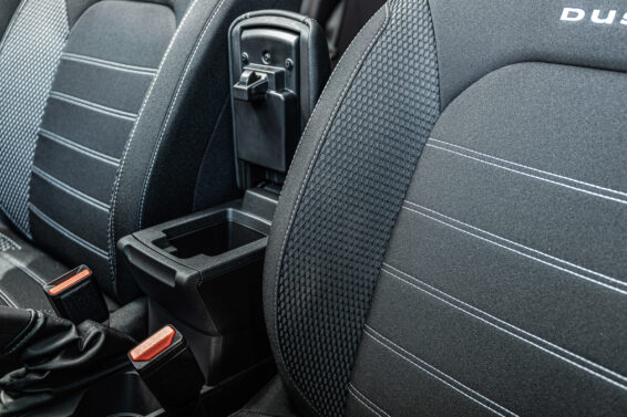 Naprotiv, sedišta su redizajnirana, dok su nasloni za glavu preuzeti od aktuelnog Clija. Ukoliko spuste pogled vlasnici bivšeg Dustera primetiće i da je centralna konzola između sedišta drugačija, te da je ubačen tapaciran naslon za laktove, od sada podesiv po horizontali (hod od 7 cm). U njemu je omanji boks zapremine 1,1 l, dok su s zadnje strane, koja „gleda“ na putnike pozadi, ugrađena dva USB priključka.