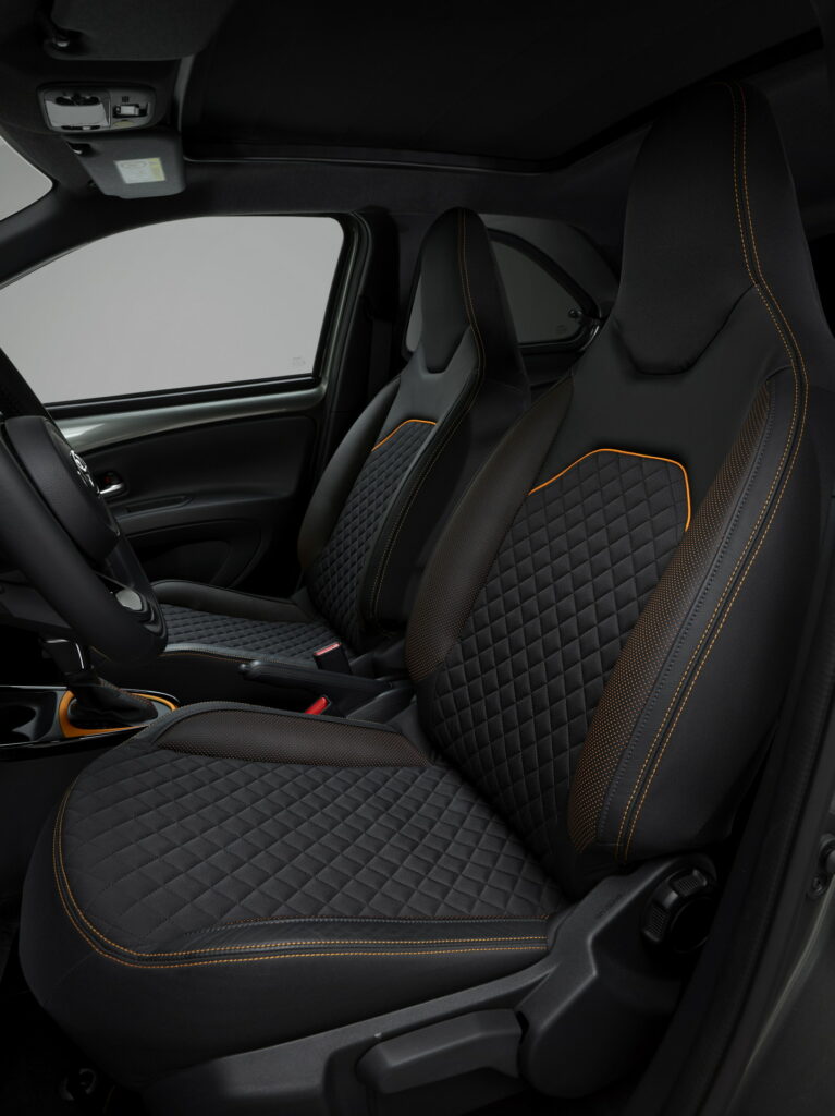 Japanska marka navodi da je poboljšana zvučna izolacija naspram prošlog automobila, te da vozač sada sedi 55 mm više nego ranije, što daje benefite prilikom vožnje u gradskim uslovima. Uz to, prečnik okretanja vozila ostao je vrlo skroman, samo 4,7 m! Aygo X dolazi sa čitavom nizom aktivnih bezbednosnih sistema upakovanih u standardni spisak opreme pod nazivom Safety Sense. Tu su AEB, detekcija pešaka i biciklista, adaptivni tempomat i niz drugih naprednih sistema.