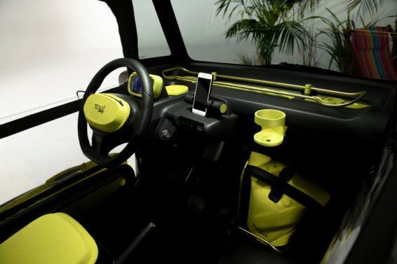 Citroen je na ovom prototipu uklonio i vrata, a ukoliko dođe do nevremena može se postaviti nekakvo platno, kako bi se zaštitili vozač i suvozač od kiše. Takvo rešenje bilo je primenjeno i kod modela Mehari. Ono što nam se posebno dopada jesu nova sedišta sa daleko većim slojem sunđera, jer su upravo sedišta kod standardne verzije Amija bila predmet kritika u testu Perice Rajkovića.