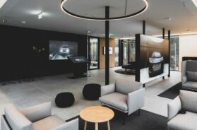 Rezervacije se vrše putem aplikacije za pametne telefone myAudi, na koji način se pristupa jednom od šest mesta za dopunu elektromobila u ovoj kući. Nakon što se baterija vozila spoji s izvorom energije, vlasnik može da dane dušom u prostoru površine 200 metara kvadratnih, a koji je namenjen rekreaciji. U sobi su postavljene fotelje s naslonima za ruke, a tu si i stolovi, stolice, TV aparat dijagonale 98 inča, ostali komadi tehnike i otvoreni vrt za bavljenje fizičkom aktivnošću. Moguće je i poručivanje hrane, ako je gost Audijevog kutka za dopunu baterija nameran da se poduže zadrži u kući.