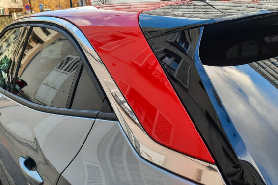Prednja hauba kod testiranog je iste boje kao i ostatak (donjeg dela) karoserije. A može opciono (uz lepu doplatu) da se u drugu boju „ofarba“ i pr. hauba 😊