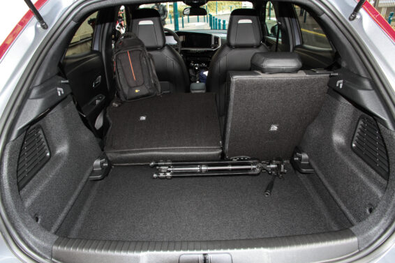 Sam prtljažnik je sa 350 l na nivou spoljašnjih dimezija, što je ipak manje od 2008 (435 l) i Crossland X (408 l). Obaranjem naslona dobija se preko 1.100 l, zgodno za utovar kabastih i dugih predmeta, no dobijena površina nije ravna. Da bi se to ostvarilo Opel je predvideo dva nivoa ali u mojoj Mokki nije bilo horizontalne police koja ga poravna.