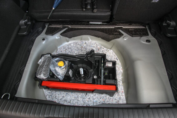 Drugo, da bi se otvorila peta vrata mora se prstima napipati prekidač ispod branika, osim što je prenisko smešten u zimskom periodu prsti se redovno isprljaju. U dnu pronađoh samo pribor za opravku guma, za utehu prostora ima za rezervni točak „ćopavac“, ne i za jedan od 18 cola, u koje je bila obuvena ova Mokka.