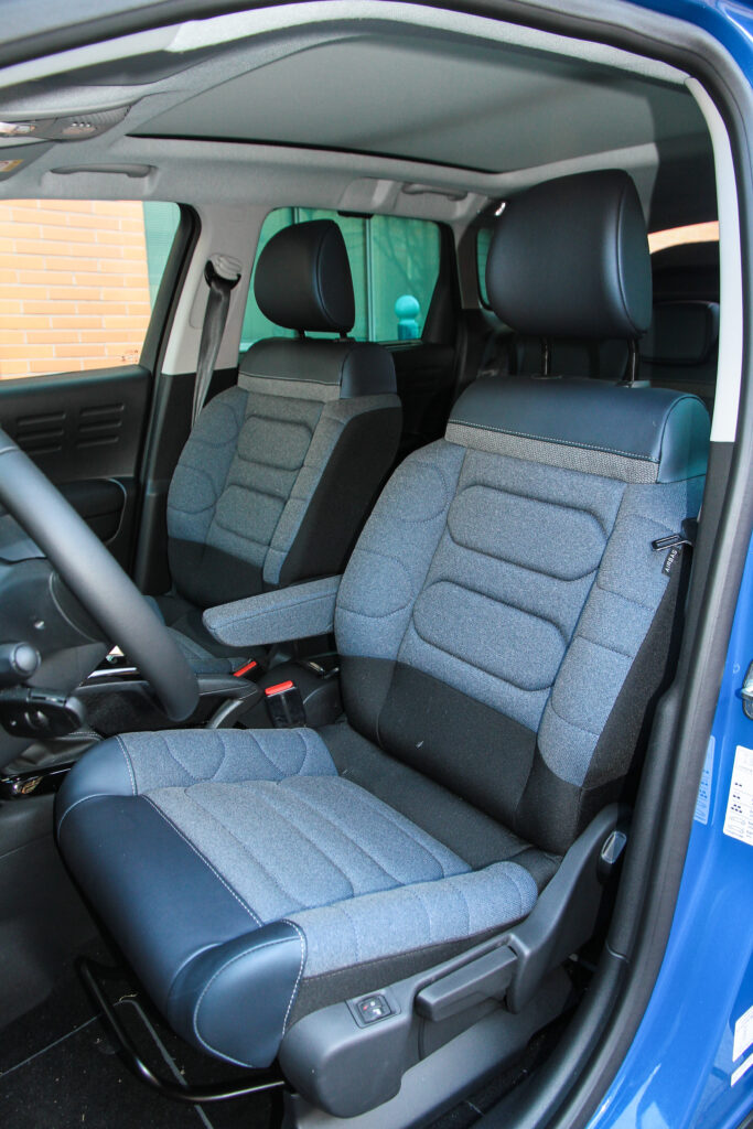 Na prednjim sedištima ipak se osećamo mnogo bolje, po ugledu na pojedine modela Citroena i ovde se srećemo s 15 mm dopunskog sunđera otpornim na deformisanje. Prijatno su tvrda i široka, plus visoko postavljena, čime je olakšan ulazak/izlazak iz vozila. Preglednost je isto tako dobra, uz to, prilikom parkiranja može se osloniti na senzore napred i pozadi, kao i sistem kamera koja daje sliku od 360°.