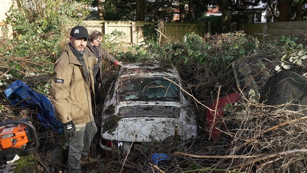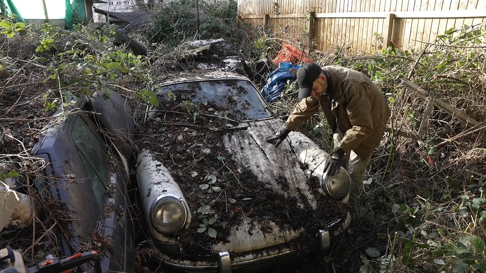Ali ako malo bolje pogledamo šta se sve krije, vidimo i neke baš zaista zanimljive modele, kao što su Lancia Delta, Fiat 124 Spider, Mazda MX-5 Miata, Porsche 924 Turbo i Mercedes 190E. Posle dugočasovnog čišćenja teritorije zarasle u travu i obrasle u drveću, tim je pronašao beli Porsche 912.