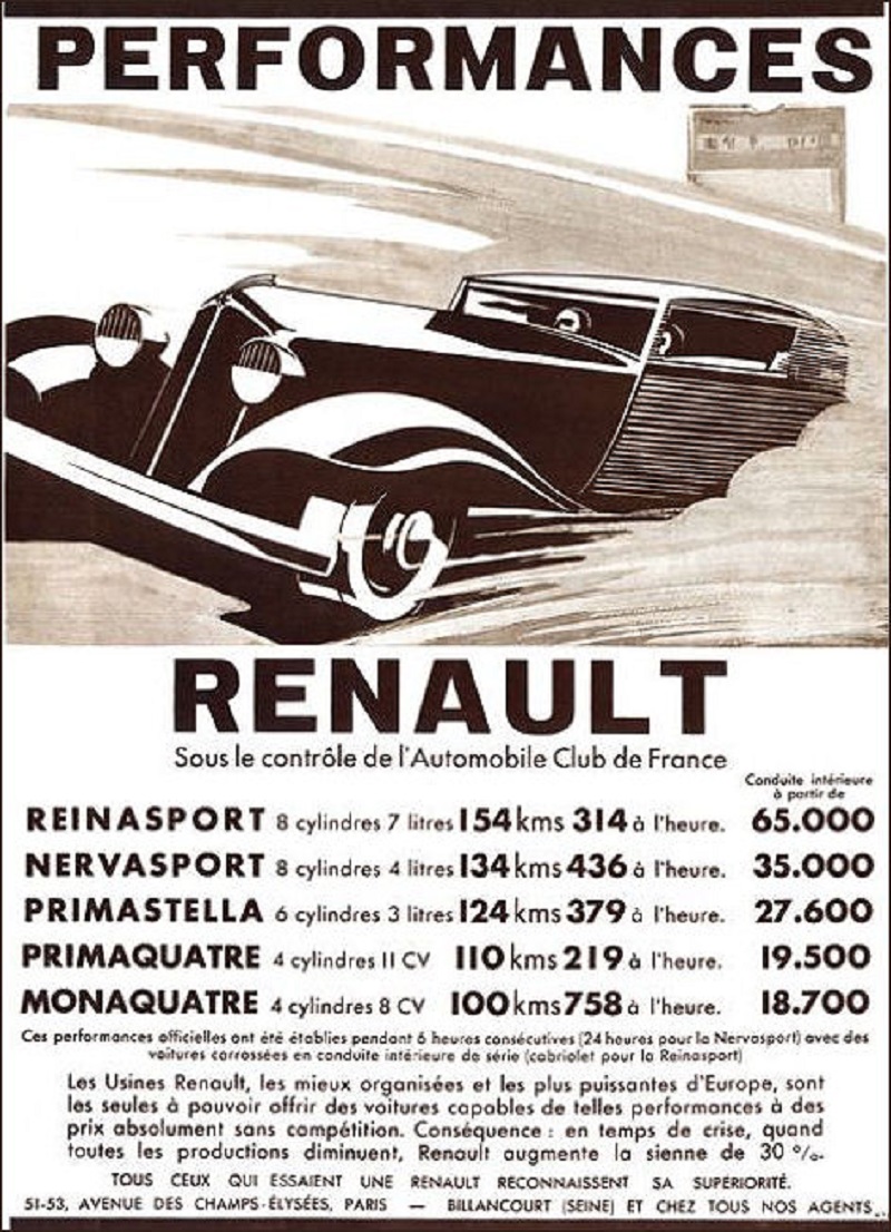 Renault je osnovan još 1899. godine, a njegov prvi model Voiturette je pružao motor sa jednim cilindrom i razvijao je maksimalnu brzinu od 32 km/h. Ali, vremenom je Luis Reno je shvatio da kompanija ne može da postane profitabilna kroz proizvodnju malih i jeftinih modela, pa je krenuo sa radom na razvoju velike i skupocene limuzine.
