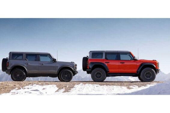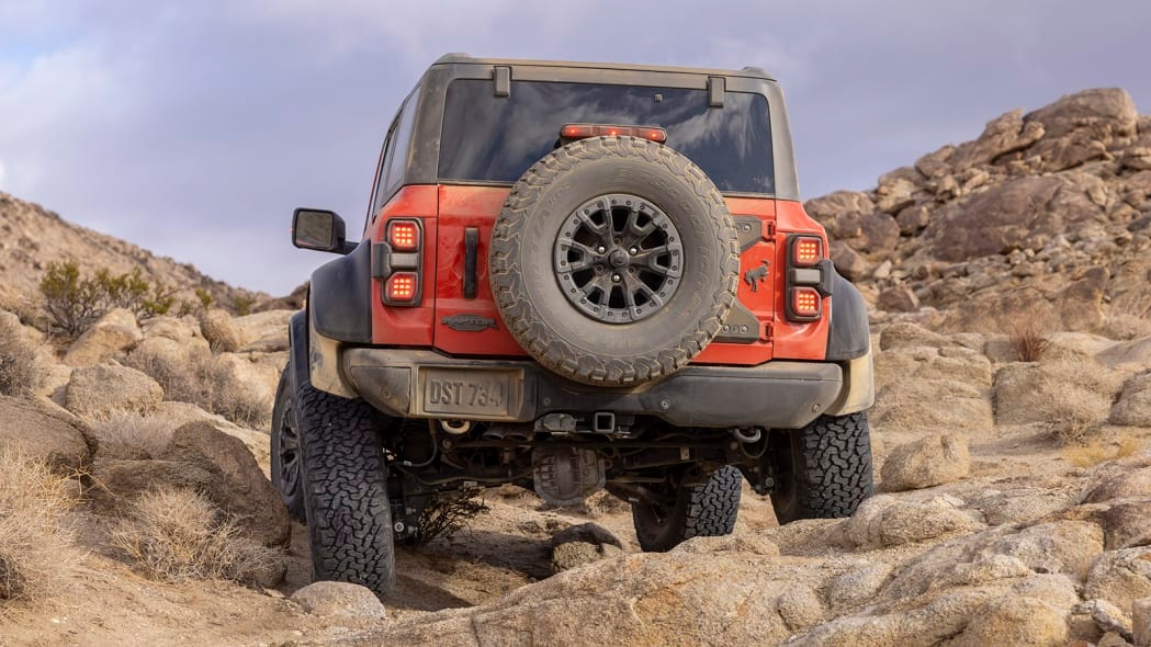 Standardan Bronco se nudi i sa dvoje vrata gde ga kratko međuosovinsko rastojanje i visok klirens čine pomalo opasnim za prevrtanje pri višim brzinama. Ford preporučuje da dobro izmerite prostor u vašoj garaži pre nego što kupite ovog Raptora jer je širok čak 2.180 milimetara (za 218 mm širi nego standardan model), a ključni razlog u dodatnoj širini leži u pneumaticima.