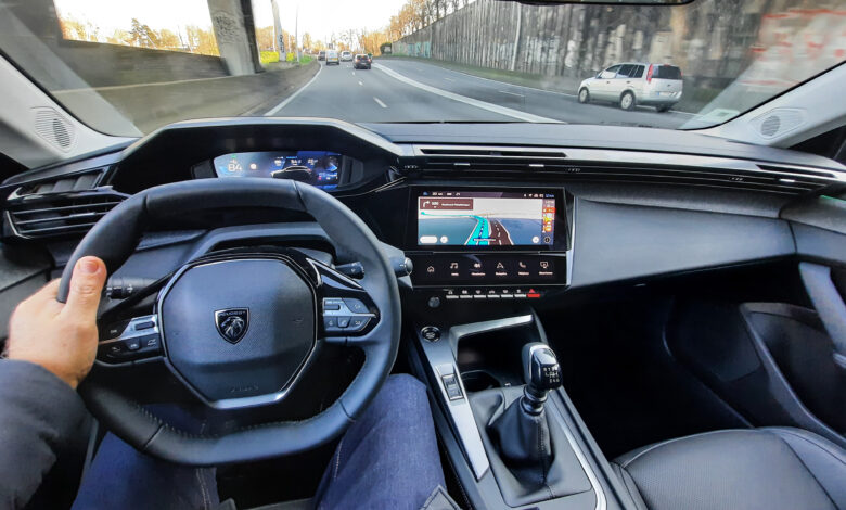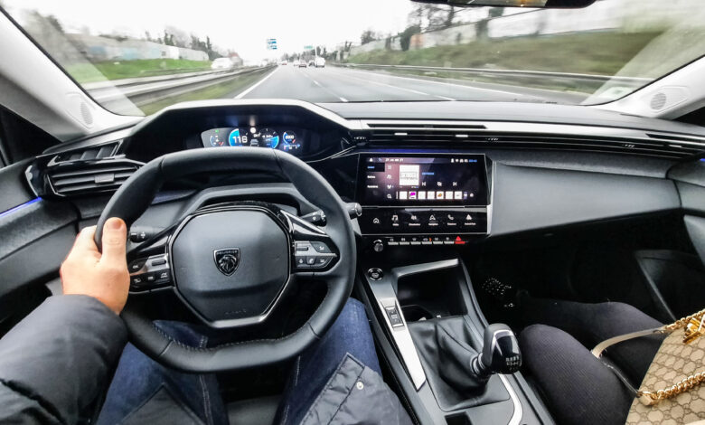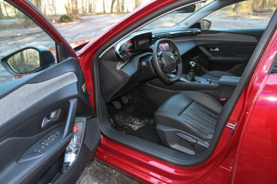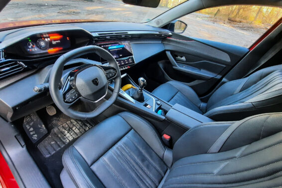 Već izvesno vreme Peugeot se distancira od ostalih konkurenata specifičnim enterijerom, sada svima poznatim i- cockpitom. Verovatno znate da se radi o specifičnoj ergonomiji vozačevog radnog mesta, koja evidentno ne odgovara svima! Na ovom polju ni novi 308 nije mnogo uspešniji od prethodnog, za razliku od recimo 3008, gde problem praktično ne postoji (kod SUV-a se sedi više). Naime, iako „smešno“ mali, te podrezan s gornje i donje strane, upravljač zaklanja donji deo instrumenata, zbog čega je neophodno tražiti kompromise. Podići sedište ili spustiti upravljač, ponekad i jedno i drugo, sve u zavisnosti od korpulencije vozača.
