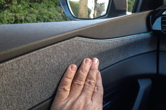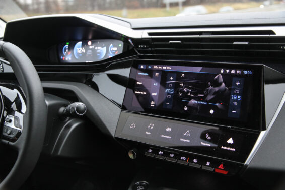 Ne kažem, sve deluje moderno i atraktivno, s mnogo, da ne kažem previše informacija za jednog vozača seniora… Što se tiče dizajna enterijera priznajem da deluje atraktivno, donekle je iskopiran stil većeg 3008. Mislim pre svega na široku traku od sivog platna, koja se proteže po komandnoj tabli i na vrata. Ovde pronalazimo i ambijentna LED svetla, isto tako promenljive boje. U testiranom vozilu sedišta su opciono presvučena veštačkom i pravom kožom (središnji deo je od prave), naglašavam da su izuzetno udobna i dobro profilisana.