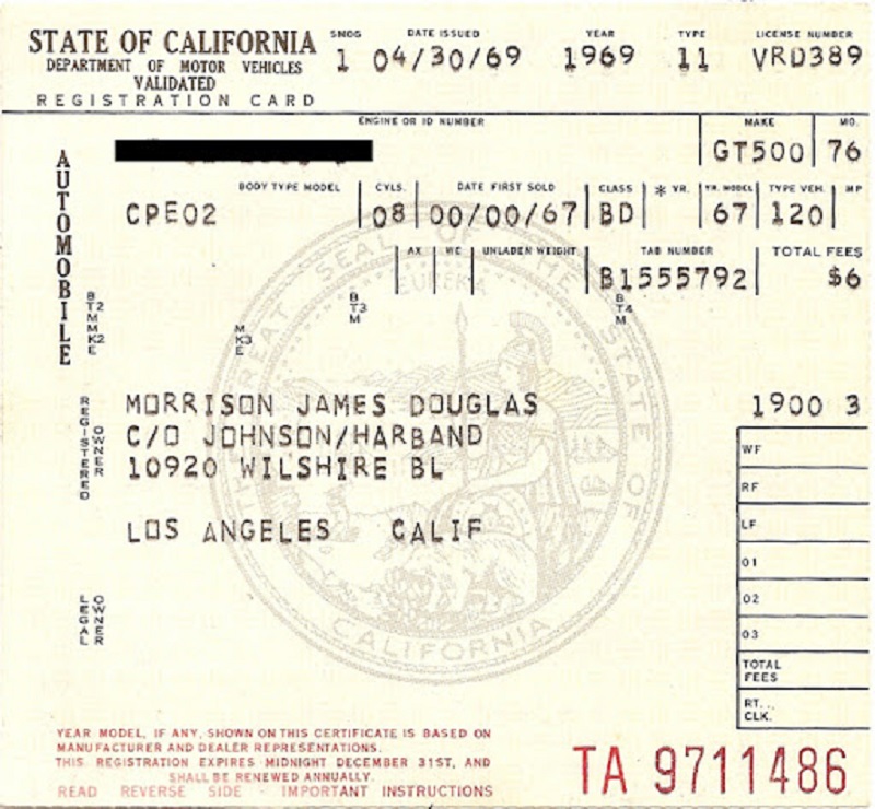 Oni mogu da povrde da automobil sa takvim VIN brojem nije registrovan još od 1969. godine i da je verovatno prodat otpadu nakon nesrećnog slučaja. Delovi sa retkog i poželjnog modela kao što je Shelby GT500 su svakako skupoceni, pa je vlasnik otpada verovatno prodao ih zasebno. On verovatno nikada nije previše obratio pažnju na dokumentaciju, a čak i da jeste, ime „Džim Morison“ je relativno često u Sjedinjenim Američkim Državama.