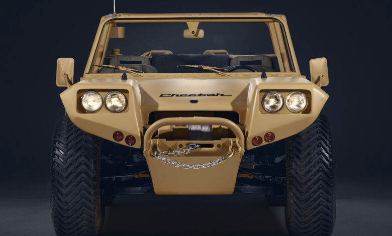 Cheetah, odnosno “gepard”, bio je terenac sa pogonom na sva četiri točka i dizajnom primerenim za upotrebu vojske. Koristio je 5,9-litarski V8 motor poreklom iz Chryslera koji je isporučivao nešto manje od 190 ks. Prema zvaničnim podacima sprint do “stotke” obavljao se za 9 s, dok je maksimalna brzina iznosila 170 km/h… Solidne brojke za vozilo koje je teže od dve tone!