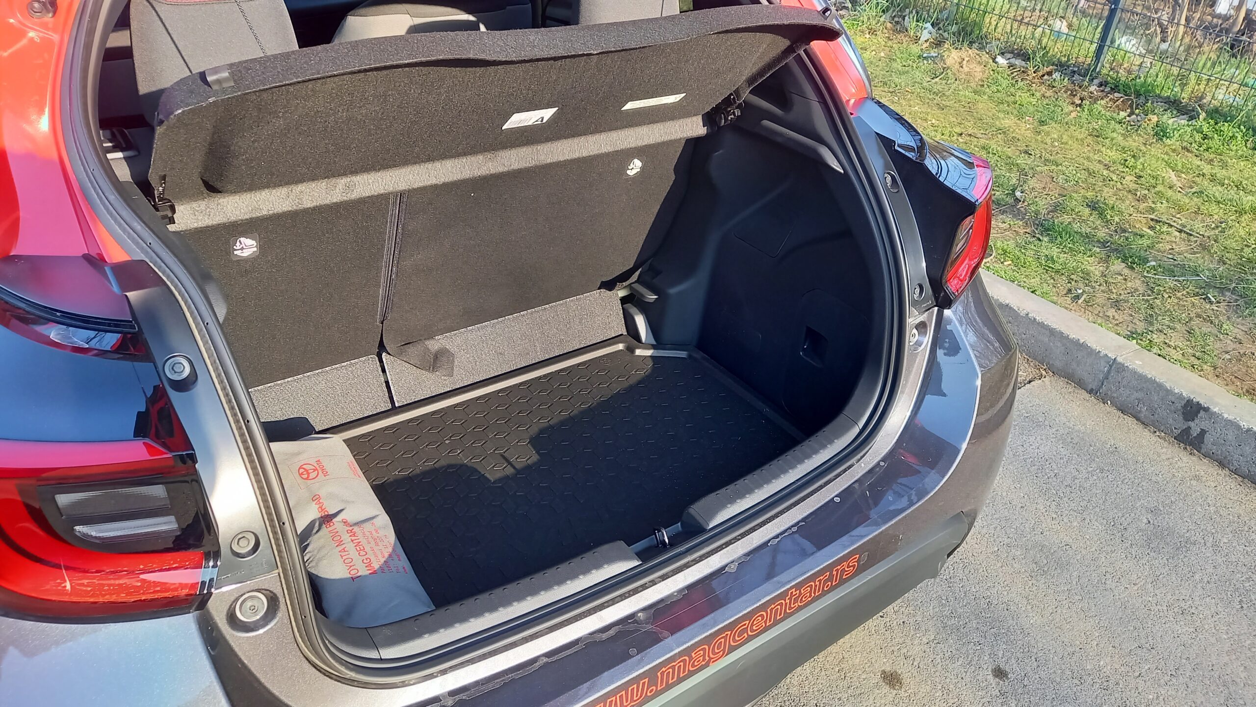 Takođe, nemam baš razumevanja ni za mali ugao otvaranja zadnjih vrata, ali, kod mnogih u tom segmentu je tako (to zameram i iz Yarisa izvedenom Yarisu Crossu). Naravno, nije tako kod svih. Na zadnjoj klupi ima dovoljno mesta da smestim nekako noge iza sebe, ali, naravno, ne i trup. No, to uglavnom i nije namena tog segmenta vozila i veoma su retki automobili “dužine oko četiri metra” sa relativno izdašnom zadnjom klupom.