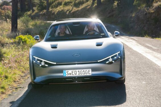 Solarne ćelije na krovu koriste se za napajanje info-zabavnog sistema u automobilu i drugih opcija, kako bi se privilegovao što veći domet. Posle 12 sati vožnje, uključujući dva zaustavljanja od po 15 minuta zarad promene vozača i provere pritiska u gumama, Mercedes Vision EQXX stigao je u Kasi.