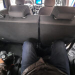 Cuj uslikah svoja kolena na zadnjoj klupi, nisam mogao i stopala! Jasno je da na tim zadnjim sedistima ti nema sta da trazis, ona su ipak rezervisana za nas „kompaktne“, ubedljivo isod 1,8 m…