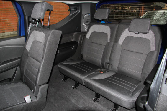 Ok, treba biti elastičan, no jednom na njima putnici nemaju nikakvog problema ni sa glavom ni s kolenima, pod uslovom da nisu viši od nekih 1,80-1,85 m. Po ugledu na sedišta ispred, koja su uzdignuta za 55 mm, i treći je red je podignut za 35 mm. S mojih 1,72 m na njima se osećam baš komotno, u bok vozila odložih flašu s vodom od litar i odškrinuh treće staklo, što nije izvodljivo u verziji sa 5 sedišta. Kako u svakodnevnoj upotrebi nije neophodno imati na raspoganju i ova sedišta, lako se preklope i priljube uz naslone klupe ispred, kada u prtljažnik staje 565 l.