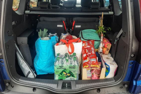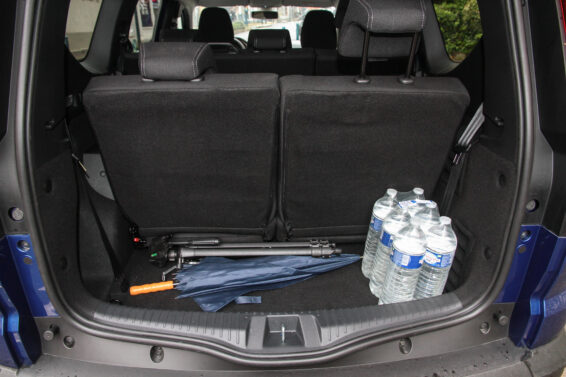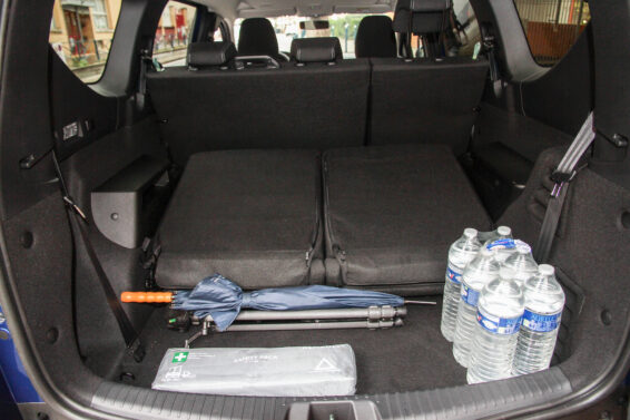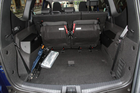 Zapravo prima i više jer se polica koja ga prekriva ne može postaviti iza trećeg reda, tako da je izvodljivo tovariti sve do plafona. Najveći problem i zapravo jedina greška u koncepciji odnosi se upravo na tu policu, tj. roletnu, u konfiguraciji sa 7 sedišta ne znamo šta ćemo s njom. U prtljažnik ne staje, dok ispod nogu putnika smeta, najbolje ju je odložiti u garažu ukoliko je posedujete. Dakle, da bi se dve osobe smestile na treći red sedišta, prvo se otvore velika vrata pozadi od 110 cm, zatim se preklopi klupa u drugom redu podeljena na 2/3 (lako, iz dva poteza), čime se oslobađa širok pristup.
