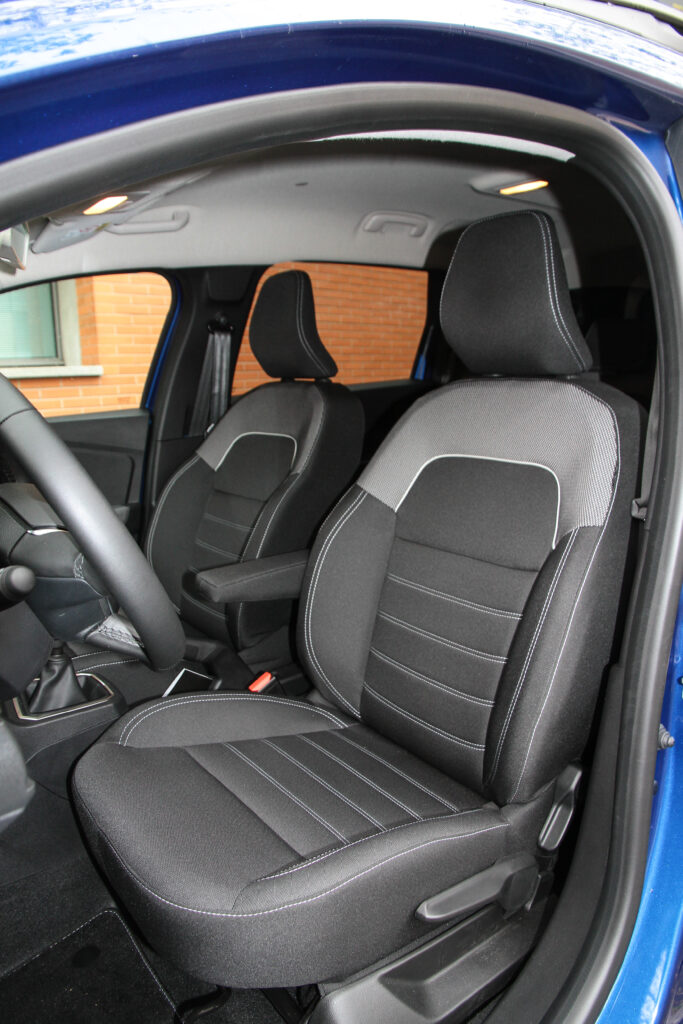 Naprotiv i Confort, za razliku od osnovnog Essentiel, poseduje veliki ekran od 8 inča, nakačen na gornji deo komandne table i simpatično platno na centralnoj konzoli, vratima i gornjem delu sedišta. Kad smo već kod njih recimo da su su udobna, s dovoljno snažnim bočnim osloncima i da vozačevo poseduje integrisan oslonac za desni lakat, nažalost ne i podešavanje za lumbalni deo leđa. Levi lakat isto tako ima dobar oslonac na samim vratima, a na dohvat ruke su četiri električna podizača prozora i komande za isto tako električno podešavanje retrovizora.