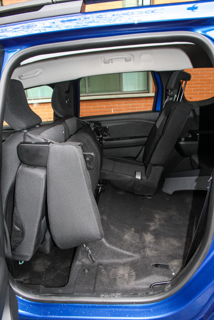 Strpati sedam odraslih osoba u 4,55 m dugo vozilo mnogima će se učiniti nemogućom misijom, posebno ukoliko se radi o pravim sedištima, a ne nekakvim klupicama rezervisanim za decu nižeg uzrasta. U prethodnom druženju s Joggerom nisam bio u prilici proveriti koliko su zaista udobna i prostrana, upravo zbog toga ovoga puta posvećujem im dužnu pažnju. Odmah po otvaranju prtljažnika uverih se u njihovo prisustvo, zapremina ovog svedena je na skromnih, ali i dalje upotrebljivih 165 litara.