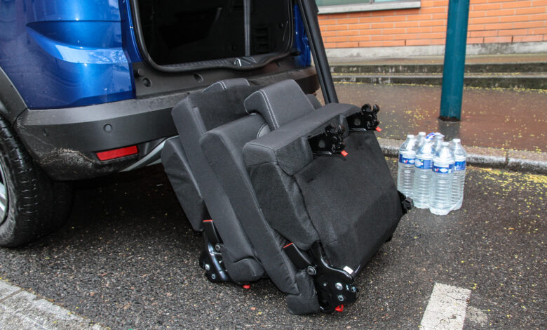 Ta nesretna roletna može se tada postaviti na svoje mesto, tim bolje jer je ponekad neophodno sakriti sadržaj prtljažnika od previše znatiželjnih pogleda. Inače dopunska sedišta nisu fiksirana, bez veće muke izvadih ih iz vozila (nemaju više od 10 kg svako), što je neophodno ukoliko želite povećati prtljažnik na nekih 700 l. Pažnja, za njih se u Francuskoj doplaćuje 750 evra, ali se navodno ne mogu naknadno kupiti i ugraditi jer ne postoje ni podni držači ni sigurnosni pojasevi što je i razlog za lošu ocenu na EuroNCAP testu.