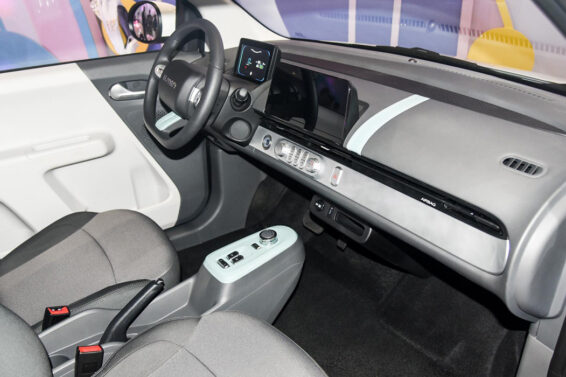 Na simpatične crtaće u kabini podseća jedino boja presvlaka na sedištima. Sve ostalo je zrelo i za odrasle je. Tako je postavljen i veliki instrumentacioni ekran naslonjen na kućište koje drži obruč upravljača, a tu je i monitor multimedijalnog sistema od 10,25 inča, kao što se vidi i panel na kom su smeštene sve kontrole uređaja za klimatizaciju.