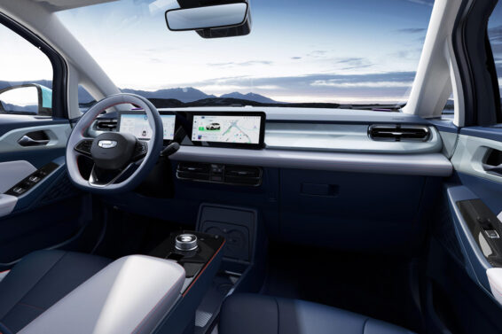 Zapravo, pošteno bi bilo navesti da je Geometry E samo dalja evolucija modela EX3, koji je sam po sebi, kroz mnoge naknadne iteracije, vezan za benzinski hečbek iz 2010. godine s oznakom Geely SC5-RV. Pogonski okvir koji definiše oblik karoserije i geomtriju otvora za vrata je ostao identičan. Ali dizajneri su odradili dobar posao u težnji da omoguće da Geometry E izgleda kao da je u korak sa savremenim dobom. Čeoni panel u kabini, pa i svi paneli karoserije su u potpunosti novi.