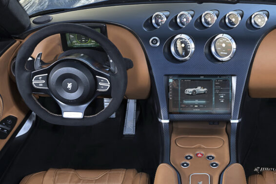 Ipak o brzini punjenja baterije i ostalim specifikacijama u vezi sa tim procesom nema nikakvih informacija – one će verovatno uslediti tek kasnije. Unutar kabine se i dalje oseća retro atmosfera. Na centralnoj konzoli nalazi se sedam analognih instrumenata – omaž tradiciji ovog proizvođača, dok je ispred vozača digitalna instrumentalna tabla. Takođe, na centralnoj konzoli nalazi se i displej za kontrolu informativno-zabavnog sistema.
