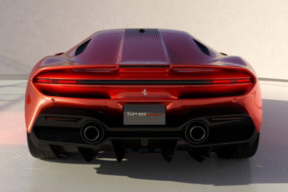 Umesto providnog poklopca motora je postavljen onaj od čvrstog materijala, pa nije montirano prozorsko staklo ni na uobičajenom mestu nazad. Sva oprema vezana za sistem rasvete je takođe originalna, pa tako umesto brendiranih ovalnih svetala imamo tanke LED trake dostupne oku na zadnjem delu novog Ferrarija.