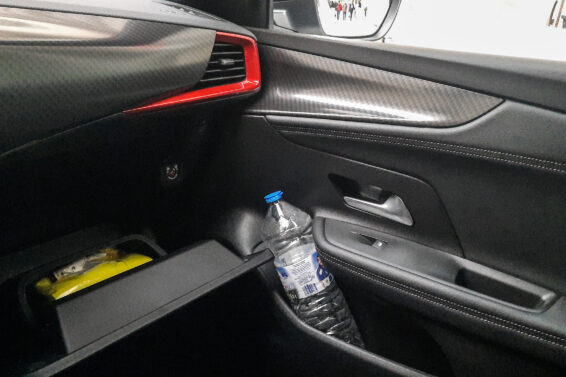 Generalno uzevši kabina u potpunosti zadovoljava funkcionalnošću, u vrata staju flaše od 1,5 litara, dok je ispred suvozača pregradak za rukavice, dubok kao pećina (nažalost bez osvetljenja). Upotrebljeni materijali su različitog kvaliteta i koliko sam razumeo zavise od završnog nivoa. U mojoj Mokki pri vrhu centralne konzole, dakle odmah ispod vetrobranskog stakla, tanak je sloj mekane plastike, kao i na oblogama vrata, ostatak je od standardno tvrde ili lakirane.