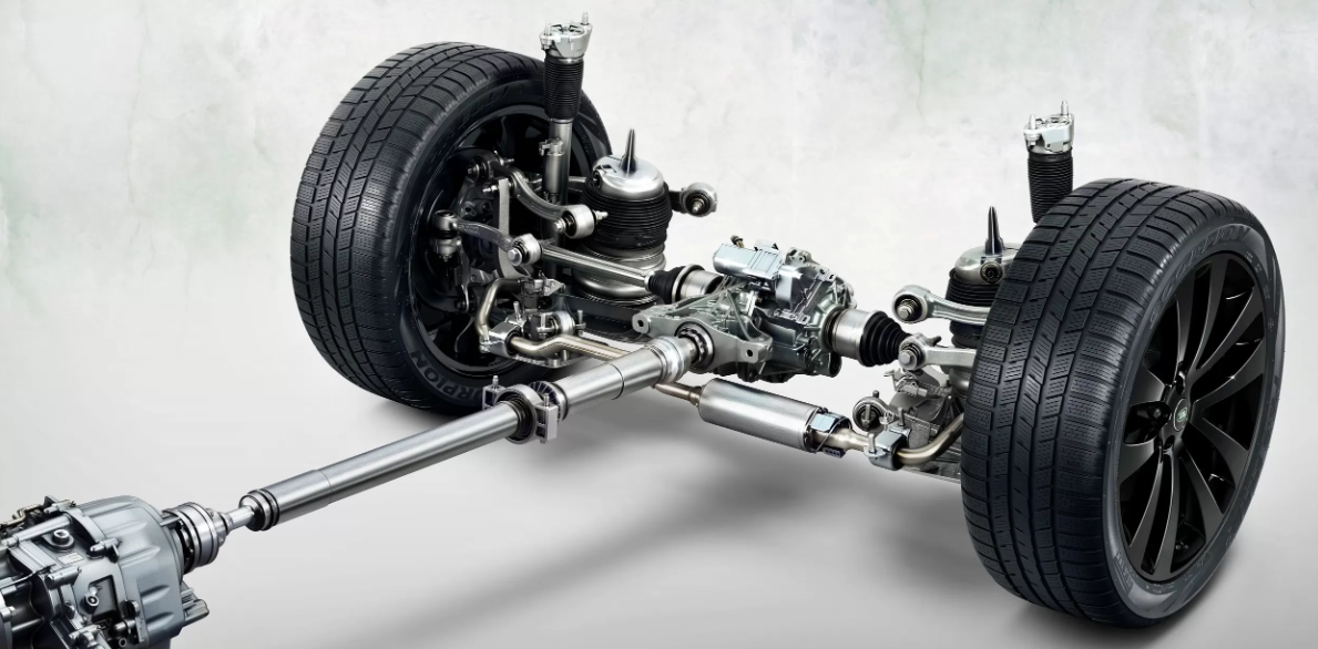 Plug-in hibridne verzije imaju nešto lošiju geometrijsku sposobnost kretanja zbog električnih komponenti smeštenih ispod poda. Zadnja osovina, kao i kod starijeg Range Rovera, napravljena je od potiskivača: pri velikim brzinama, zadnji točkovi se mogu okrenuti do 7,3 stepena u istom smeru kao i prednji, dok pri malim brzinama kretanja, njihov zaokret ide u suprotnom smeru. Sve to nam je poznato i iz modela drugih proizvođača.