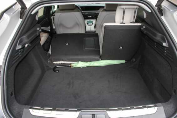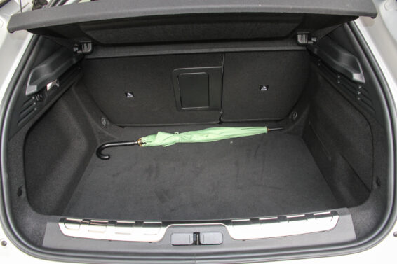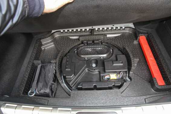 Nema u dnu mesta za rezervni točak, barem ne u našoj verziji, gde pronađoh poveći bas zvučnik odličnog Hi-Fi sistema Focal, kompresor i pribor za opravku guma. U voženom primerku naslon za laktove u sredini ima prorez kroz koji se mogu provući duži predmeti, praktično, šteta je ipak što se obaranjem naslona ne dobija potpuno ravan pod. Inače peta vrata su sa električnom asistencijom, kao i kod konkurencije mogu se otvoriti/zatvoriti i jednostavnim povlačenjem stopala ispod branika, odnosno daljinskom komandom ili iz unutrašnjosti.