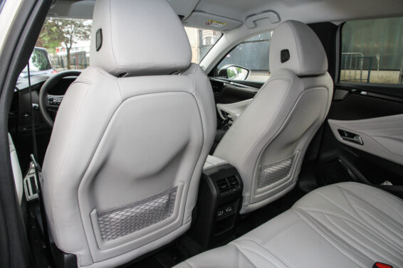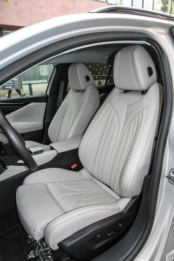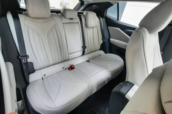Kao što rekoh kvalitet materijala je vrhunski, prednja sedišta presvučena su pravom kožom (krem bela u našem slučaju) a ne nekavom eko varijantom kakva se sve češće praktikuje. U voženom modelu, koji je praktično vrhunac ponude, retko su udobna i sa svim mogućim električnim podešavanjima, uz mogućnost da se produži sedalni deo. U vezi ambijenta napomena da mnogo toga zavisi od gore navedenih završnih nivoa, što se ne odnosi samo na opremu, već i na izbor boja i materijala. Kao što vidite na fotografijama kod voženog je enterijer svetao, za razliku od recimo Sport Line gde je kompletno crn, računajući i obloge na plafonu.
