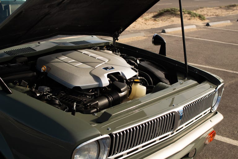 S dovoljno vremena i novca za razvoj, mogli su da prevaziđu elektronski neurotizam modernog motora, ali su odlučili da bi bilo mnogo lakše da sve bude povezano onako kako je bilo iz fabrike – prevlačeći starinsku Toyotinu karoseriju preko moderne Lexusove platforme i pogona.