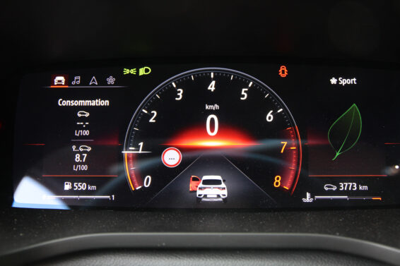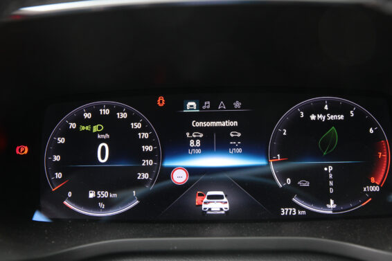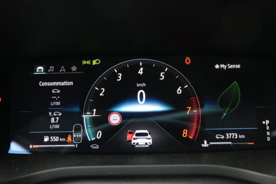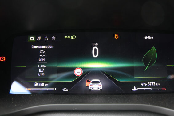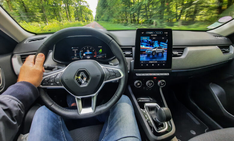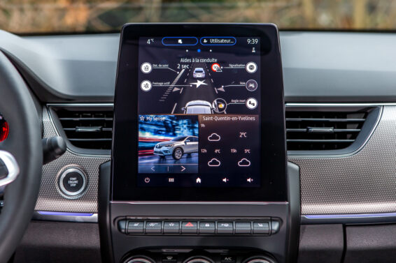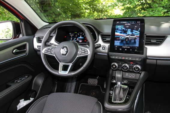 U našem zapazih dosta lakirane plastike u karbon stilu, globalno uzevši kvalitet materijala je na nivou „generalista“, nešto lošiji nego li kod jednog Peugeota 3008, ali bolji nego li kod Citroena C4, iako ni jedan ni drugi nisu njegovi direktni konkurenti. I numerička instrument tabla od 10,2 inča (25,9 cm) je prekopirana od Captura, kao i kod ostalih modela proizvođača u zavisnosti od izabranog programa (Eco, Sport i My Sense) menja se i grafika, odnosno boja podloge. Lepo deluje ta imitacija klasičnih instrumenata, „kazaljke“ zaista deluju kao prave, tanke su i precizne. Spomenimo i veliki vertikalno postavljen ekran od 9,3 inča (samo 7 za osnovnu verziju), pregledan i bogat raznim informacijama.
